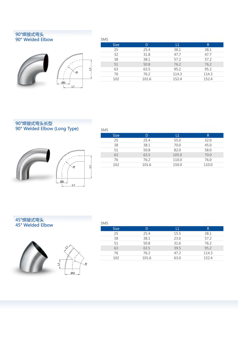 >卫生级加长焊接弯头(90度)